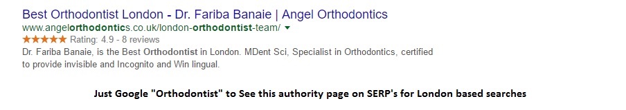 Für Begriffe wie “Kieferorthopäde London” und sogar nur für “Kieferorthopäde” hoch oben in den SERPs zu ranken bringt natürlich viele neue Kunden ein, weshalb Dr. Banaie so euphorisch ist.